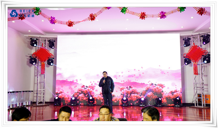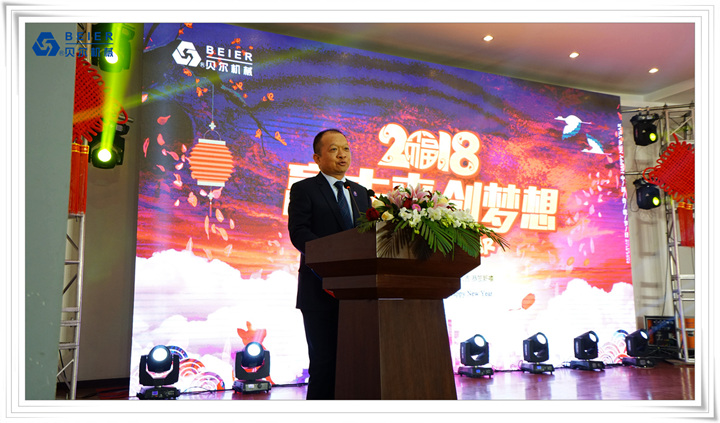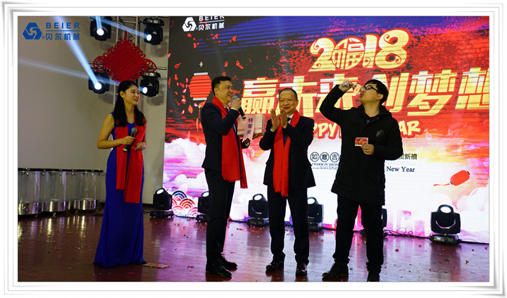在表演開始前,董事長何德方致以新春致辭,他慷慨激昂地回顧了公司2017年取得的輝煌戰績一一感謝公司全體員工、各部門的辛勤付出,并展望2018年發展規劃,公司將繼續開拓創新,整合資源,所有貝爾人要攜起手來,為實現公司更高的目標而奮斗!得到了全體員工的熱烈掌聲!在喜慶的祝酒音樂伴奏下,何董事長舉杯向所有同事和來賓祝酒,新春晚宴在一片熱鬧喜悅的氣氛中正式開始。員工代表清洗組:楊愛萍進行了發言,她作為參與者,見證了貝爾機械二十年來的蓬勃發展,反映了貝爾自下而上的實干精神已經成為貝爾的企業文化。